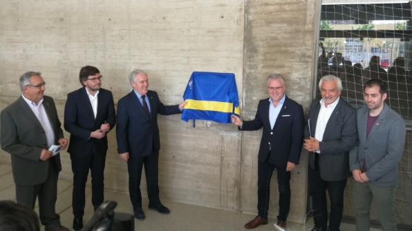 Durant la visita, Pere Granados, Josep Poblet i Javier Villamayor, han descobert tres plaques commemoratives. L'alcalde de Salou, Pere Granados, ha manifestat que "els esforços del territori per dur endavant aquests Jocs, i la gran implicació que ha servit per unir i tenir consciència de pertinença a 1 territori." Granados, ha afegit que "la població de Salou disposa de dues noves instal·lacions per a la pràctica de l'esport, alhora que ens permetrà promocionar-nos exteriorment amb el turisme esportiu." Per la seva banda, el president de la Diputació, Josep Poblet, ha destacat que "més enllà dels usos per als deu dies dels Jocs Mediterranis, les instal·lacions romandran durant molts anys per a usos esportius i de lleure del conjunt de la ciutadania, i contribuiran a la millora de la qualitat de vida del conjunt de la població" . El comissionat dels Jocs, Javier Villamayor, ha volgut posar en relleu "la unió i la bona entesa entre les setze seus dels Jocs Mediterranis, així com la implicació de la Diputació en aquest esdeveniment".