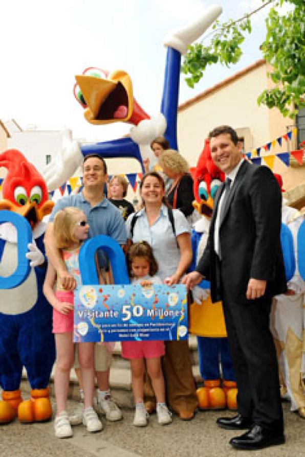 Vila-seca-Salou. Costa Daurada. Enmig d'un ambient festiu, PortAventura arribava el passat dia 27 de maig la xifra 50 milions de visites des que va obrir les portes l'1 de maig de 1995, fa ara 15 anys. La il.lustre visitant és Ana Gimeno, natural de Madrid, que ha arribat a PortAventura amb el seu marit, Carlos maig, i les seves dues filles, de 5 i 7 anys. L'arribada de la família maig Gimeno, que ha causat gran expectació, s'ha produït pocs minuts després que el parc obrís les portes a les 10 hores d'aquest matí. La visitant s'ha mostrat "molt sorpresa i emocionada" en rebre la notícia i, "feliç i contenta", ha posat amb la seva família, envoltada d'un grup de vistosos actors i ballarins de les cinc àrees temàtiques del parc, que portaven a les seves mans cada un dels números que componen la simbòlica xifra 50 milions. Premi en família El director general de PortAventura, Enrique Fontecha, els ha fet lliurament del premi, consistent en una estada d'un cap de setmana per a quatre persones en una de les singulars cabanes de l'Hotel Gold River, on la família podrà gaudir d'una experiència inoblidable en aquest hotel temàtic, que reprodueix fidelment un poblat del Llunyà Oest de 1820. A més, durant la seva estada, podran gaudir del gran nombre d'atraccions i espectacles del parc temàtic, així com de PortAventura Aquatic Park i del Beach Club. Ana Gimeno, que ja sabia que PortAventura celebra el seu 15 aniversari, ha declarat sentir-se molt "feliç", i ha comentat "ens encanta venir aquí, som assidus del parc, així que aquest premi ens fa molt feliços i ho anem a gaudir encantats" . Per la seva banda, Enrique Fontecha, ha assenyalat que "amb aquests 50 milions, podríem dir que ja ha visitat el parc un equivalent al total de la població espanyola", i ha afegit que arribar a una xifra "tan important" en un any d'aniversari és "una satisfacció doble i un motiu d'orgull".
