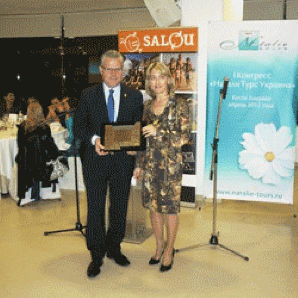 Salou. Costa Daurada. 13 d´abril de 2012. Els 130 directors de les agències de viatge que participen al primer congrés de Natalie Tours Ucraïna visiten alguns dels punts de més atracció turística de Salou com el passeig Jaume I, les platges, la zona de Pilons i el camí de Ronda. Ahir a la nit, ja van poder veure la font lluminosa i les fonts cibernètiques en l’espectacle nocturn i posteriorment van poder degustar la gastronomia local. L’alcalde, Pere Granados, va ser l’encarregat de donar la benvinguda als agents ucraïnesos –en nom del municipi- tot dient-los: “em complau saludar-vos com a capital turística de la Costa Daurada que desitja i aspira a ser la destinació preferencial del mercat ucraïnès perquè estic segur que les instal·lacions d’oci, els serveis i l’experiència vacacional que oferim és la que millor es pot adaptar a les motivacions i expectatives dels clients d’aquest país”. Al sopar, que va tenir lloc al restaurant del Club Nàutic de Salou, va comptar amb la presència de Vladimir Vorobiev, President del Grup de companyies Natalie Tours; de Natalia Vorobieva, directora general de Natalie Tours; a més del director NT Ucraïna, Alexey Korneev; i del director de l’Agència Catalana de Turisme a Rússia conjuntament amb el regidor de Turisme de Salou Benet Presas, entre d’altres assistents. Granados va parlar-los de Salou com a “una potent destinació turística de Catalunya i d’Espanya, molt ben diversificada i especialitzada a rebre i acollir turisme familiar, i que mostra una alta qualitat en serveis com així ho reconeixen diverses acreditacions i qualificacions d’excel·lència rebudes”. Però Salou també genera, va assegurar “un gran dinamisme i per això estem treballant en nous reptes i projectes incorporant en el nostre producte noves especialitzacions relacionades amb l'esport, l'exercici físic i la salut, que aportaran noves experiències i motivacions per atraure nous segments de clients, i convertiran Salou en una destinació de tot l'any, trencant així la seva dependència a l’estacionalitat”. En aquest sentit, els va parlar de projectes estratègics per a la ciutat com la implantació de noves instal·lacions hoteleres resort de gran qualitat al sector 03, la construcció d'una Ciutat Esportiva de 93.000 m2 de superfície, o la implantació d'un nou port esportiu de 900 amarres que ha de consolidar l’oferta relacionada amb l'activitat nàutica. “Per a construir aquest futur ens agradaria poder comptar amb tots vosaltres, empresaris que dirigiu agencies de viatge d’un mercat que considerem important com és l’ucraïnès, i que desitgem tingui més presència a partir d’aquest Congrés”, va concloure.