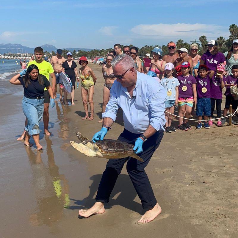 L’acte de lliurament del segell ECOMED ha estat acompanyat del retorn al mar de la tortuga Maui, una tortuga marina de l’espècie Caretta caretta, de 7 quilos de pes, que ha tornat al mar després de superar un procés de recuperació intensiu de dos mesos i mig al Centre de Recuperació d’Animals Marins (CRAM).