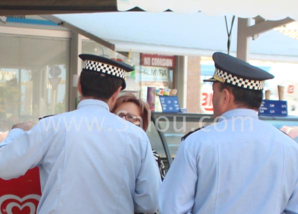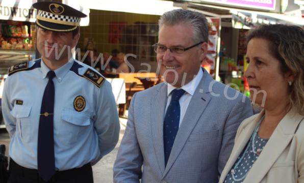 The presentation of the policing of Salou gone by the Councillor of Commerce, Reyes Pino and the Mayor of Salou, Pere Granados, on Calle Zaragoza, where they visited several establishments accompanied by the local police chief, José Luis Gargallo, and the sergeant in charge of this service.