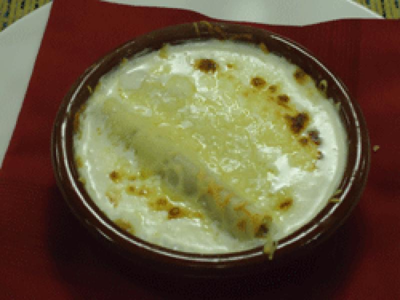 Cocinero: Hassan Chegrane Tipo de cocina: Mediterránea Capacidad: 50 personas Horario: de 13.00 a 16.00 y de 20.00 a 22.30h. Descanso semanal: sin descanso Precio: 20 euros (iva incluido) Dirección: Puerto Deportivo, Moll de Riera Local 1 – L’Hospitalet de l’Infant Entrante: Pulpitos a la marinera y croquetas caseras. Primer plato: Canelones de atún, gratinados con aroma de trufa. Segundo plato a escoger: Lubina rellena de marisco y atún. Chuletón 250 gr. con guarnición Postre: Leche frita al estilo de Segovia. Pastel de fresa. Bodega: Vino blanco J. Miquel Jané- D.O. Penedés.     Canelones de atún gratinados con aroma de trufa Ingredientes para 4 personas - Aceite de oliva - 1 cebolla tierna - Ajos tiernos - 300 gr. de atún - 1 litro de leche - 300 gr. de harina - 100 gr. de queso rallado - 12 canelones - 1 trufa - Coñac RECETA Se frie el atún a fuego lento y se flambea con el coñac. Se tritura la cebolla, los ajos y el atún. Se dora la harina y cuando está al punto se añade la leche y los ingredientes triturados, con la trufa. Calentamos agua para hervir la pasta de los canelones. Los enrollamos con la pasta de atún y los ponemos en una cazuelita de barro. Por encima tiramos la salsa bechamel y el queso rallado. Gratinamos unos 15 minutos.