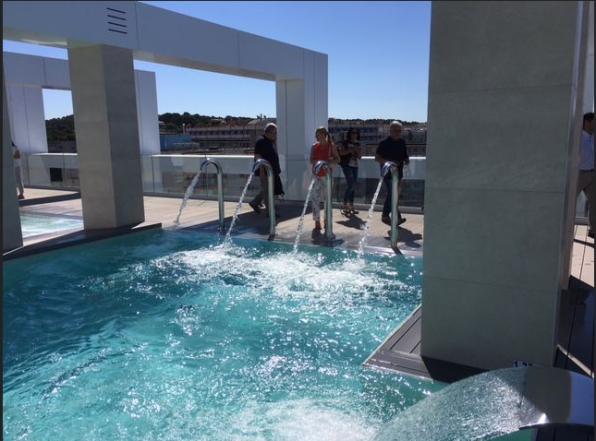 Salou. Costa Dorada. 20 junio 2018. 'Summit' es el nombre con el que el Hotel Olympus Palace ha bautizado un impresionante espacio ubicado en su terraza, con una superficie de 1.600 metros cuadrados, y que ha representado una inversión de dos millones de euros. La espectacular terraza dispone de un impactante diseño y además de los servicios de spa y chill out, también será un espacio dedicado a los eventos y las celebraciones.