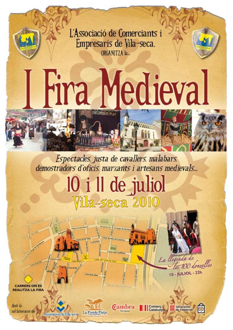Vila-seca. Costa Dorada. El próximo fin de semana, los días 10 y 11 de julio, organizado por la Asociación de Comerciantes y Empresarios de Vila-seca, se celebrará la primera Feria Medieval, en el casco antiguo de la localidad, coincidiendo con la primera representación en el Castillo de la leyenda del Rescate de las Cien Doncellas, tradición compartida con la villa hermanada de Bagà (Berguedà). Con motivo de este mercado medieval desde la Asociación de Comerciantes y Empresarios de Vila-seca, tenemos previsto instalar unas paradas en los alrededores del Castillo y el casco antiguo para dar a conocer la oferta y diversidad de productos de los nuestros asociados y comerciantes a vecinos y foráneos que visiten la población durante aquellos dos días. Más de veinte y cinco firmas comerciales locales, y unos cincuenta marchantes y artesanos de fuera villa invitados para esta ocasión, repartidos en los cerca de 80 stands de la feria, expondrán sus productos y ofrecerán obsequios y degustaciones a los visitantes, intentando consolidarla , como una más de las otras actuaciones encuadradas dentro del Plan de Dinamización Comercial y que van dirigidas a luchar en favor de un tejido comercial más sólido, ya no perder cuota de mercado en favor de las poblaciones vecinas. Dos jornadas lúdicas repletas de actividades, con espectáculos y atracciones para los más pequeños, caravana de ponis, demostradores de oficios, marchantes y artesanos medievales, pasacalles y exposiciones, y el sábado a las 22 h. los Jardines del Castillo y organizado por el Ayuntamiento de Vila-seca, la representación del Rescate de las Cien Doncellas.