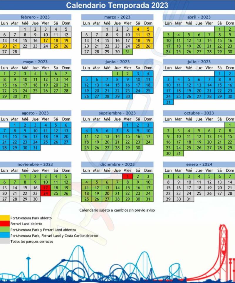 Por otra parte, Ferrari Land abrirá 264 días en 2023 y Caribe Aquatic Park lo hará durante más de 100 días.